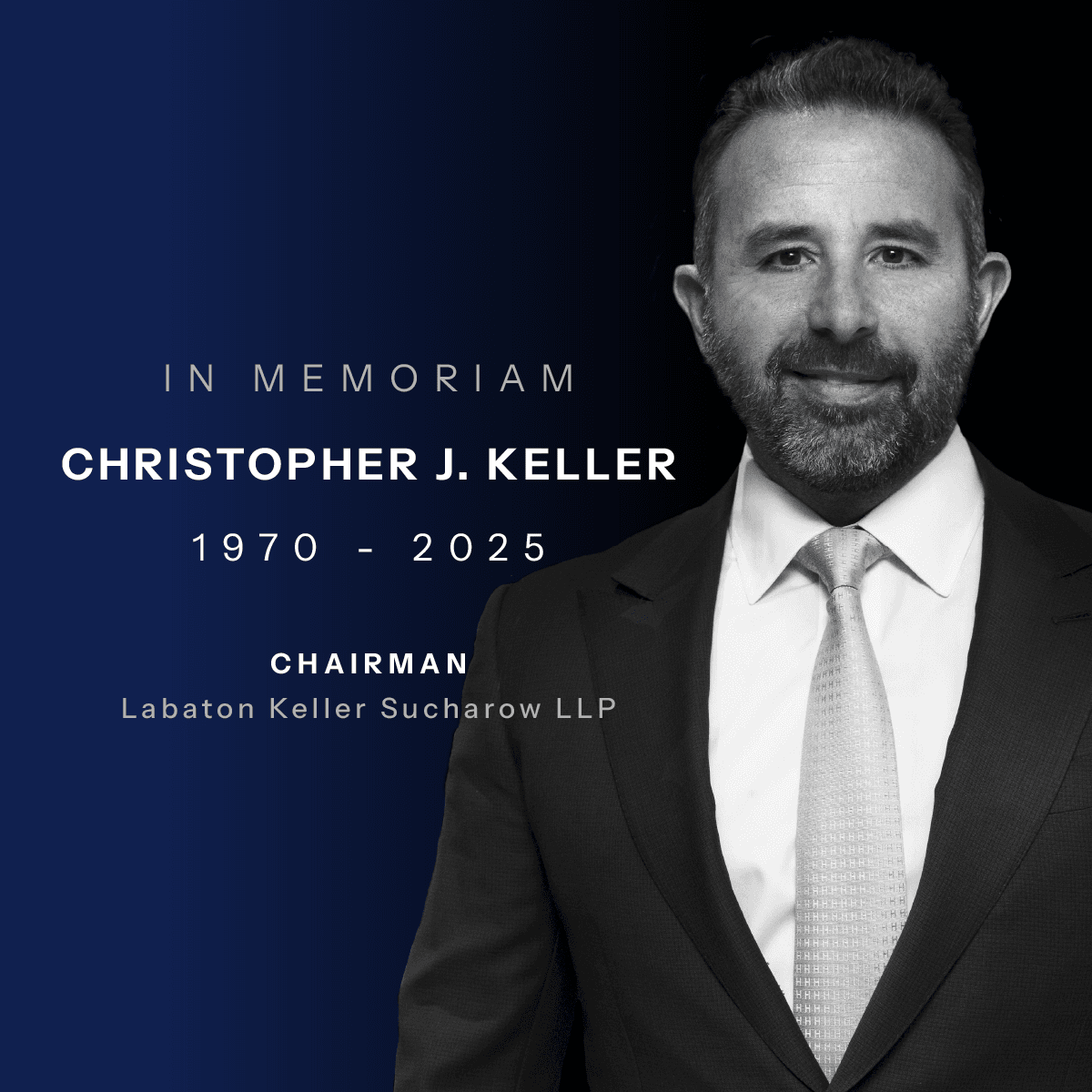 “We are deeply saddened by Chris’s passing and extend our heartfelt condolences to his wife, Anike, and sons, Max, Braden, and Cole, and cherished members of our Firm family.” Eric J. Belfi, Senior Partner at Labaton Keller Sucharow, said: “For nearly three decades, Chris was the heart and soul of this Firm, shaping it into what it is today. He was more than an exceptional lawyer, mentor, and friend—he was a champion of justice whose immeasurable contributions to the rule of law and the plaintiffs’ bar will leave a lasting legacy.”